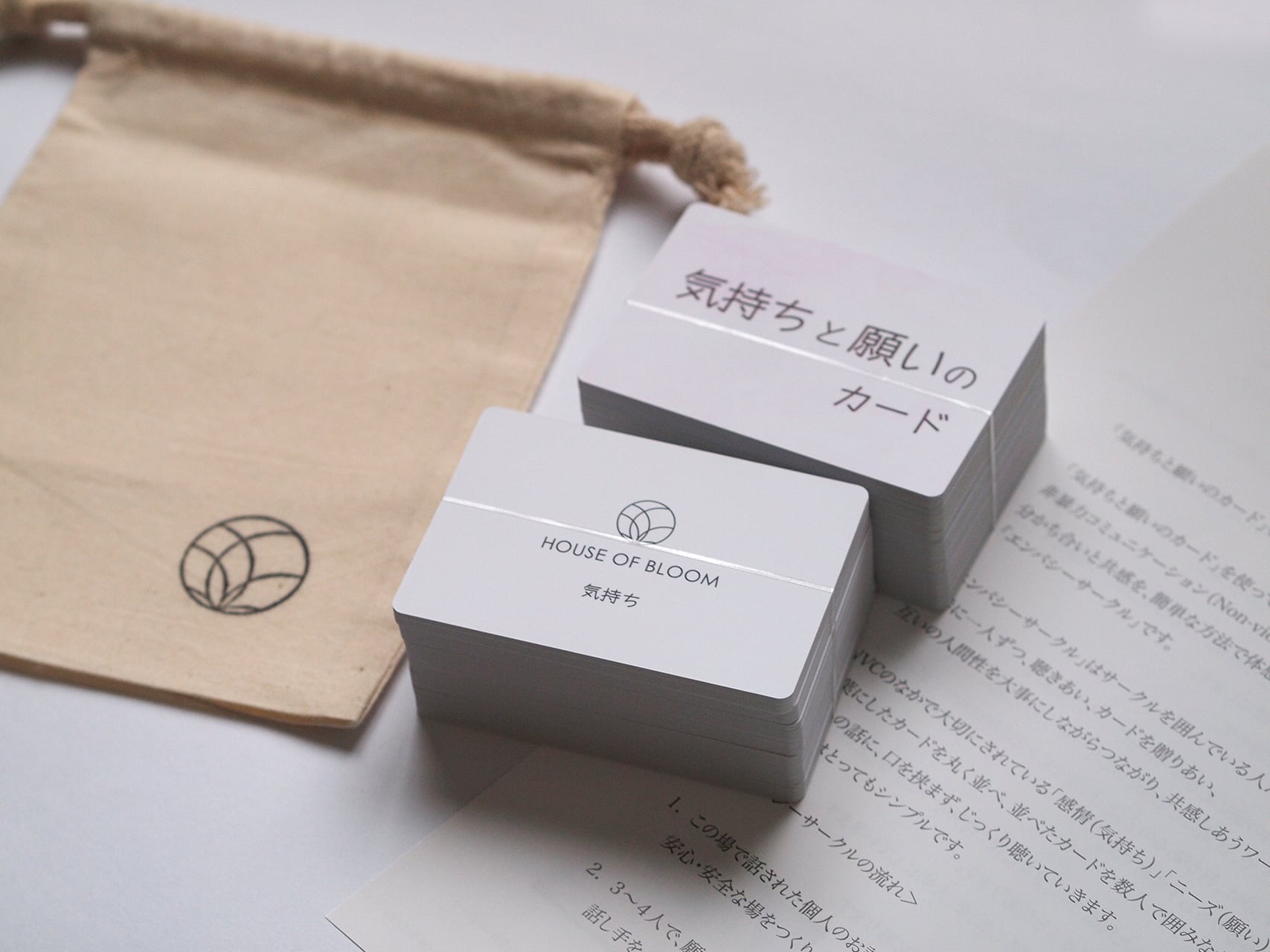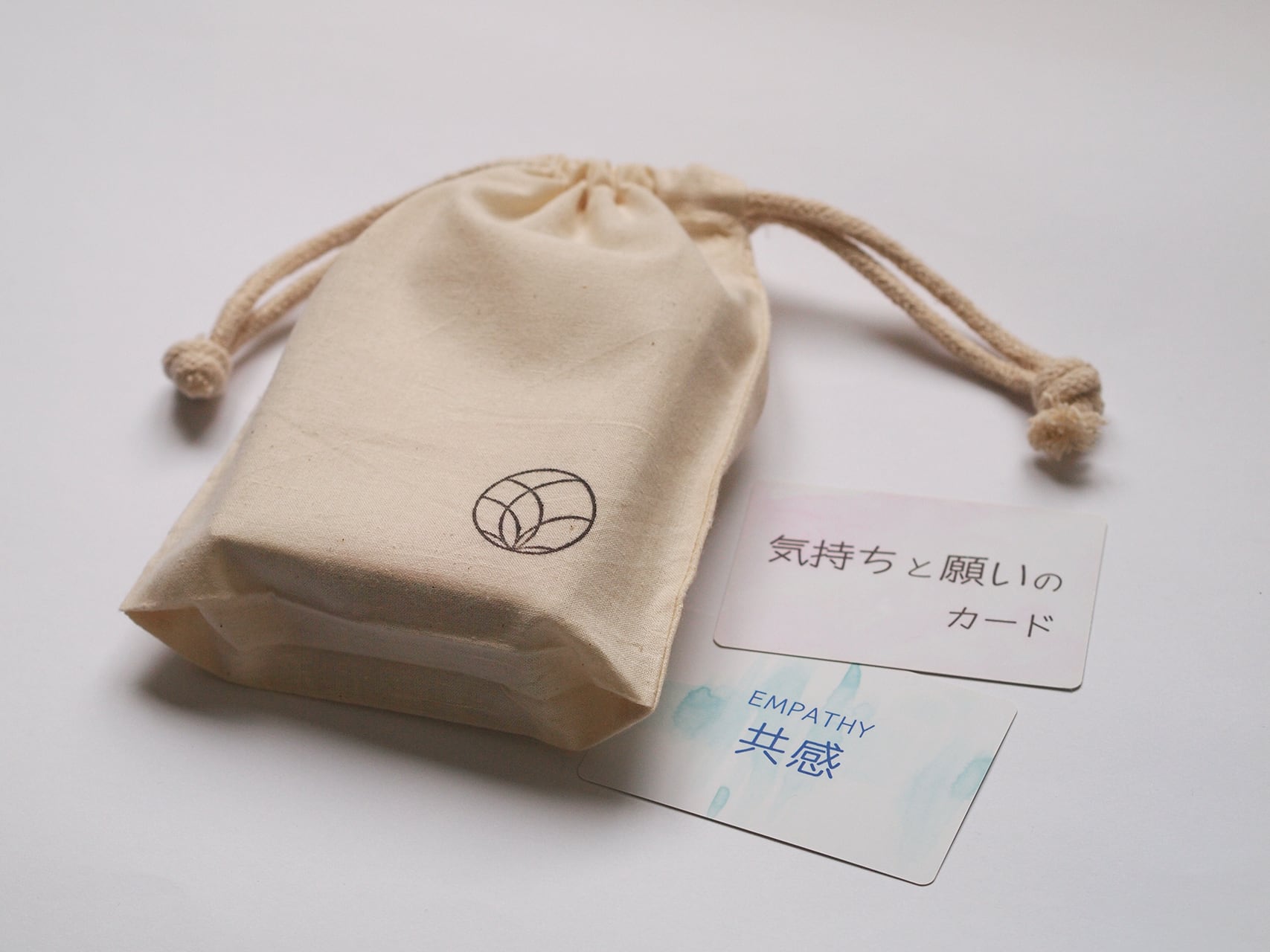「気持ちと願い」に寄り添う、エンパシーサークルで使いたくて創りました。「気持ち(感情)」「願い(ニーズ)」のカードがそれぞれ108枚。「願い」のカードは、1枚1枚手書きの柄が入っています。言葉を手に取ったときの「ギフト感」が感じられます。マットな手触りのカード。毎日1枚、その日の言葉を引いて、味わうのも楽しい使い方です。